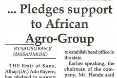 The Emir of Kano, Alhaji (Dr.) Ado Bayero, has pledged support to African Agro Group in its committment to reduce farming cost in the Country.